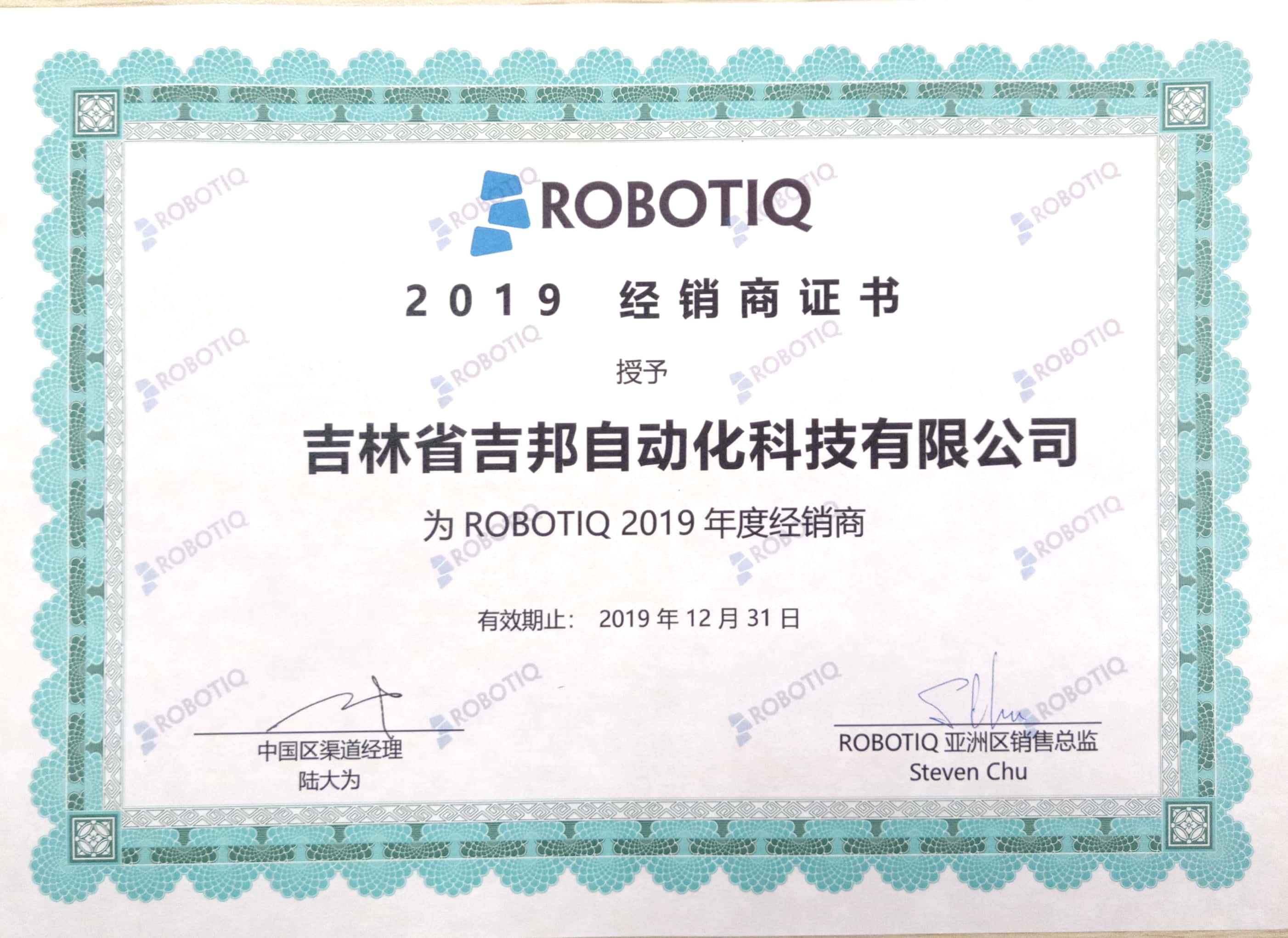 ROBOTIQ代理證書